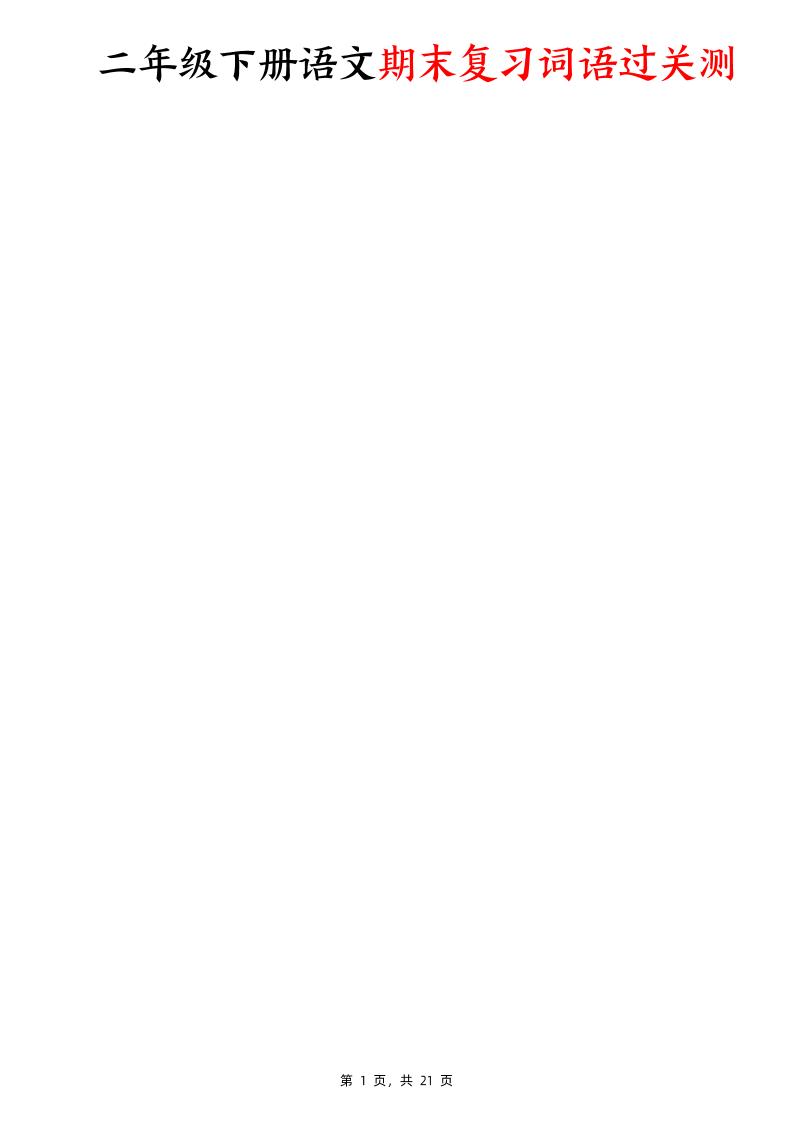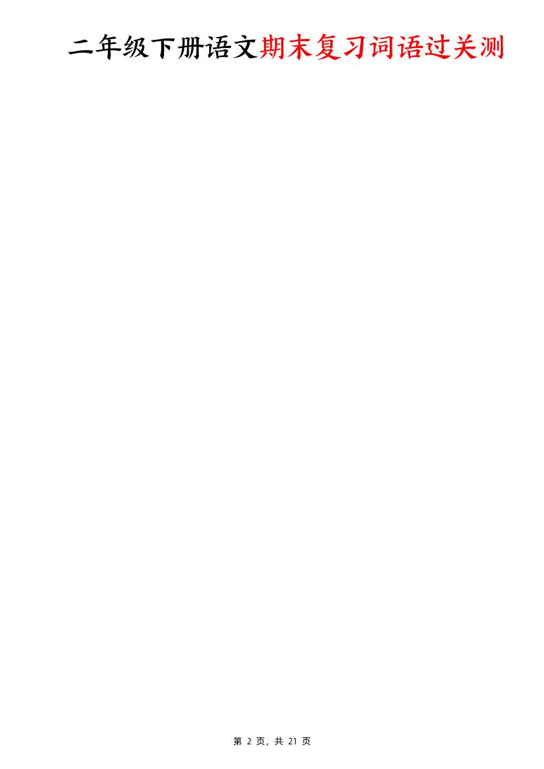 二下语文期末复习词语过关测(含答案21页)-大设天下